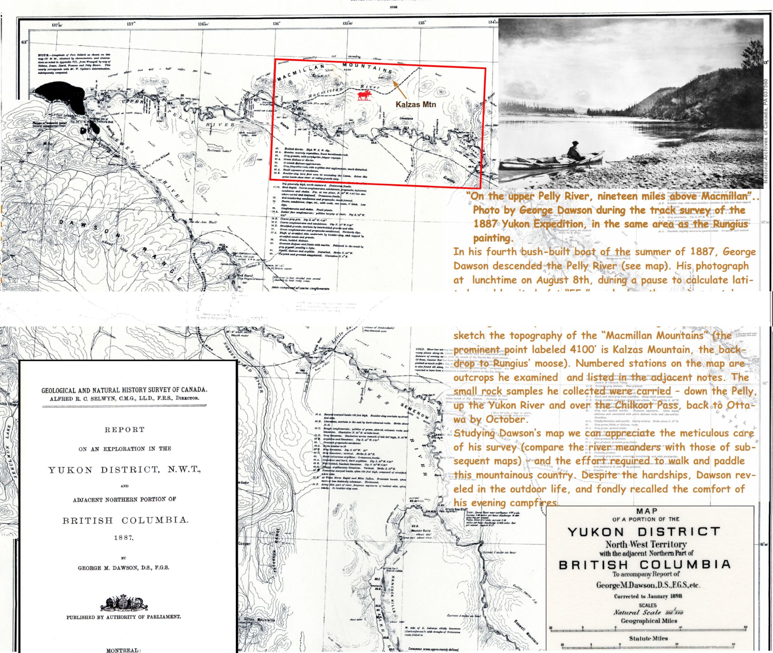 Map 2: Closeup of portion of 1887 map by Dawson for the area near the Rungius painting (moose)